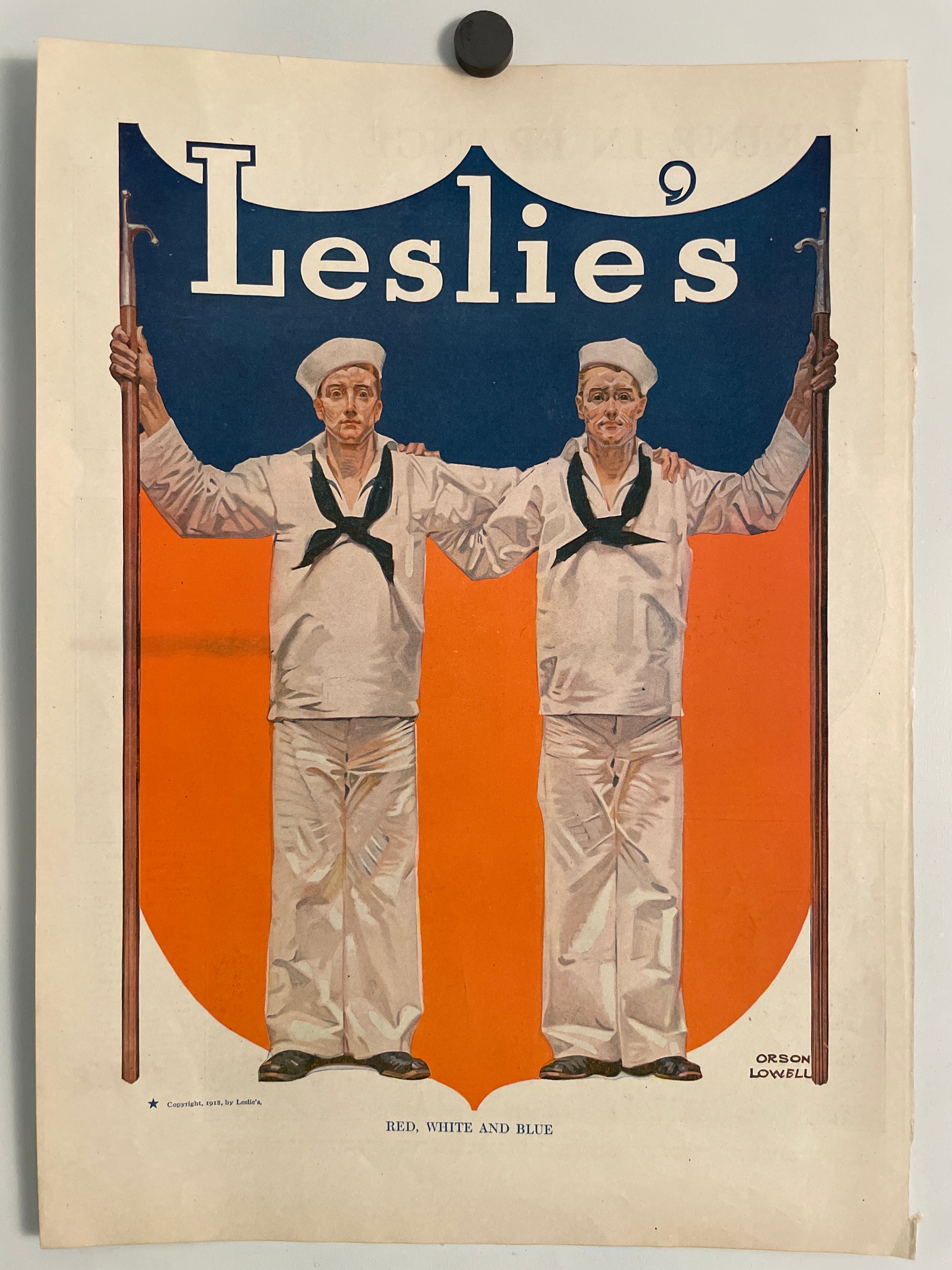 Leslie's - Rojo, blanco y azul, portada de revista litográfica antigua de Orson Lowell, 1918