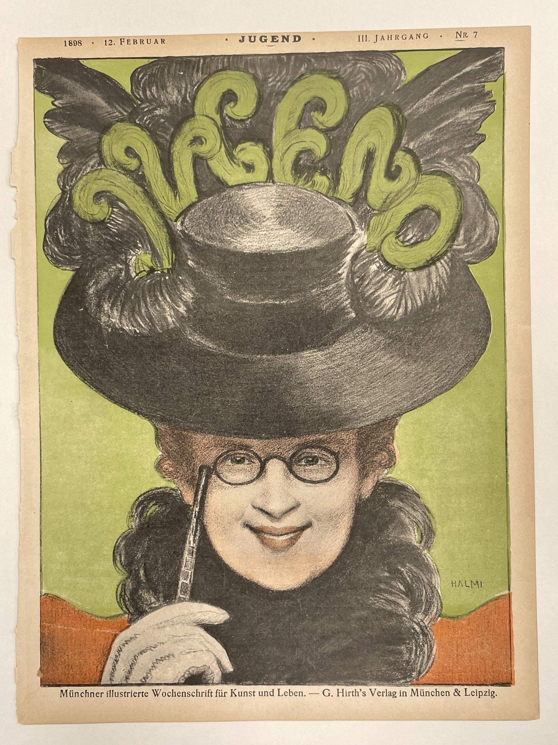 llI. Jahrgang Nr.7 JUGEND, antique publication cover, February 12, 1898
