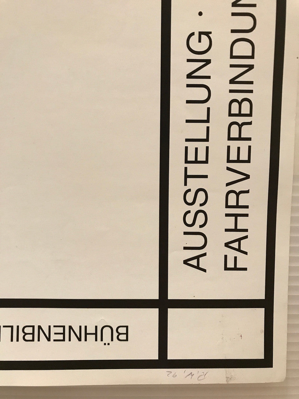 El cartel alemán de 1992, que presenta una escenografía de Roman Weyl, promociona una exposición de sus obras que se realizará en el Museo de Berlín, en Alemania, de junio a enero.