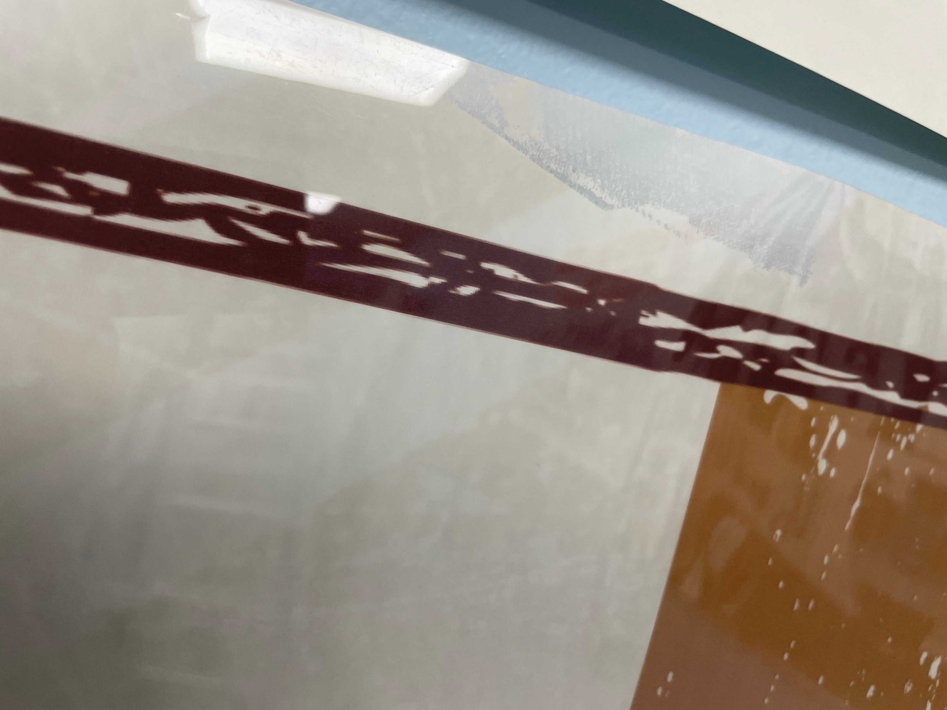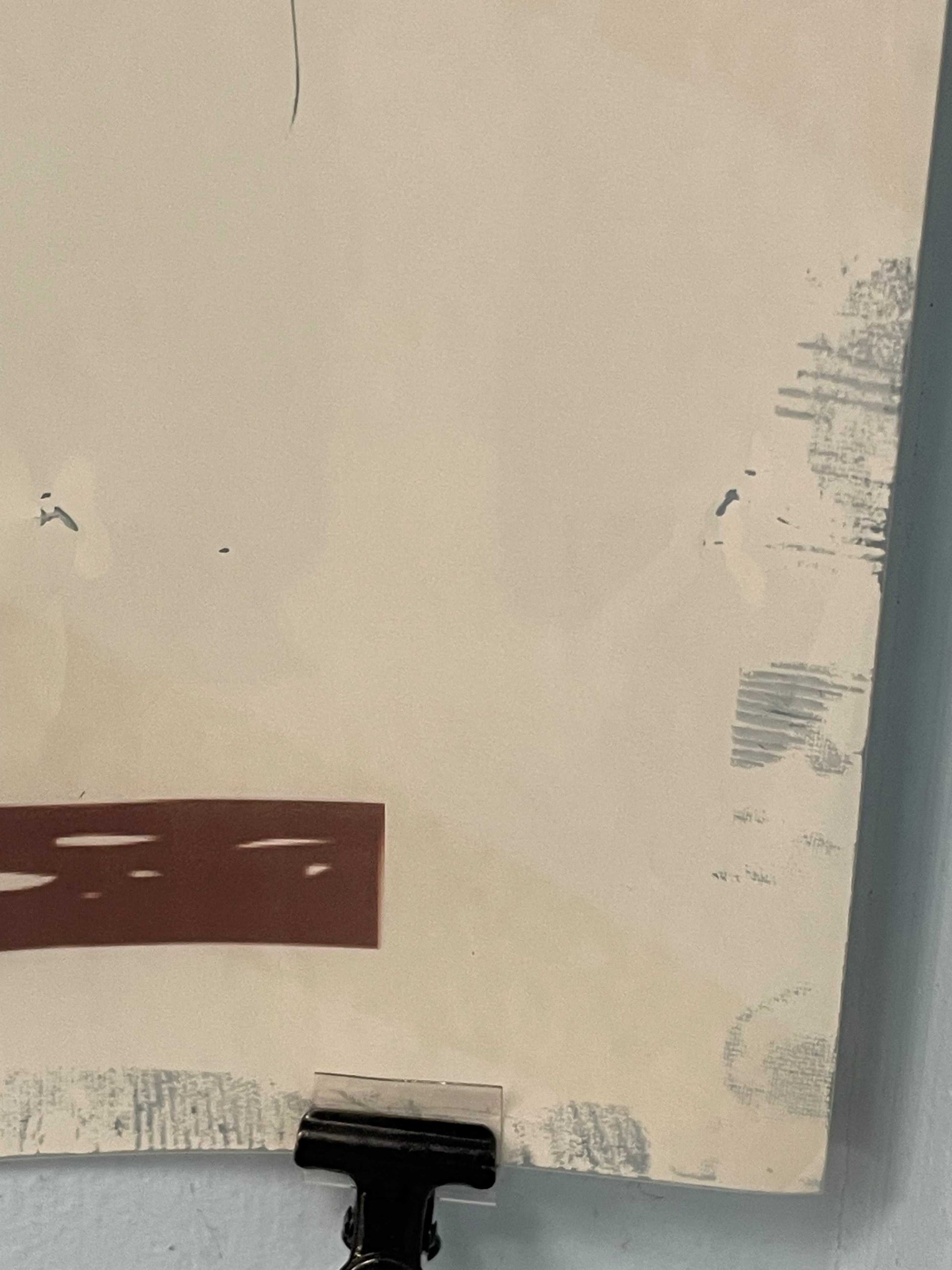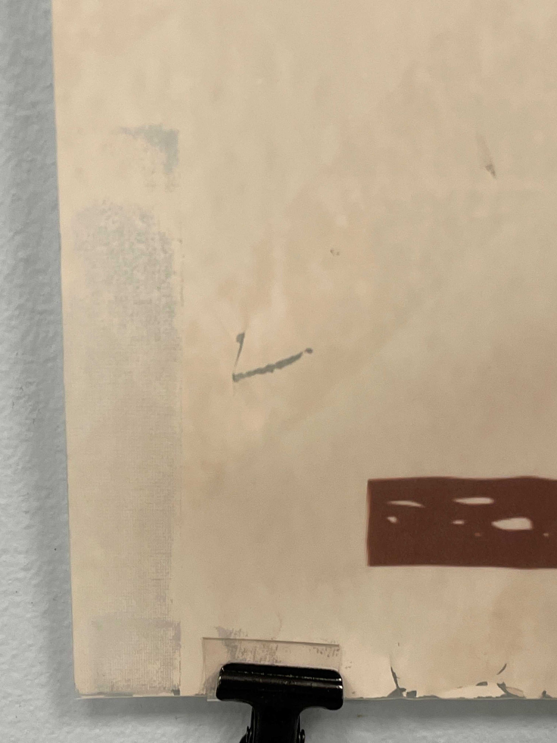 condition: Good overall condition. This is a very unusual - an oversized silk screen on the reverse of a single sheet of mylar, There is some visible wear of the pigment along the edges - probably corresponding with the placement for display. There are also a couple of scratches toward the lower left side.