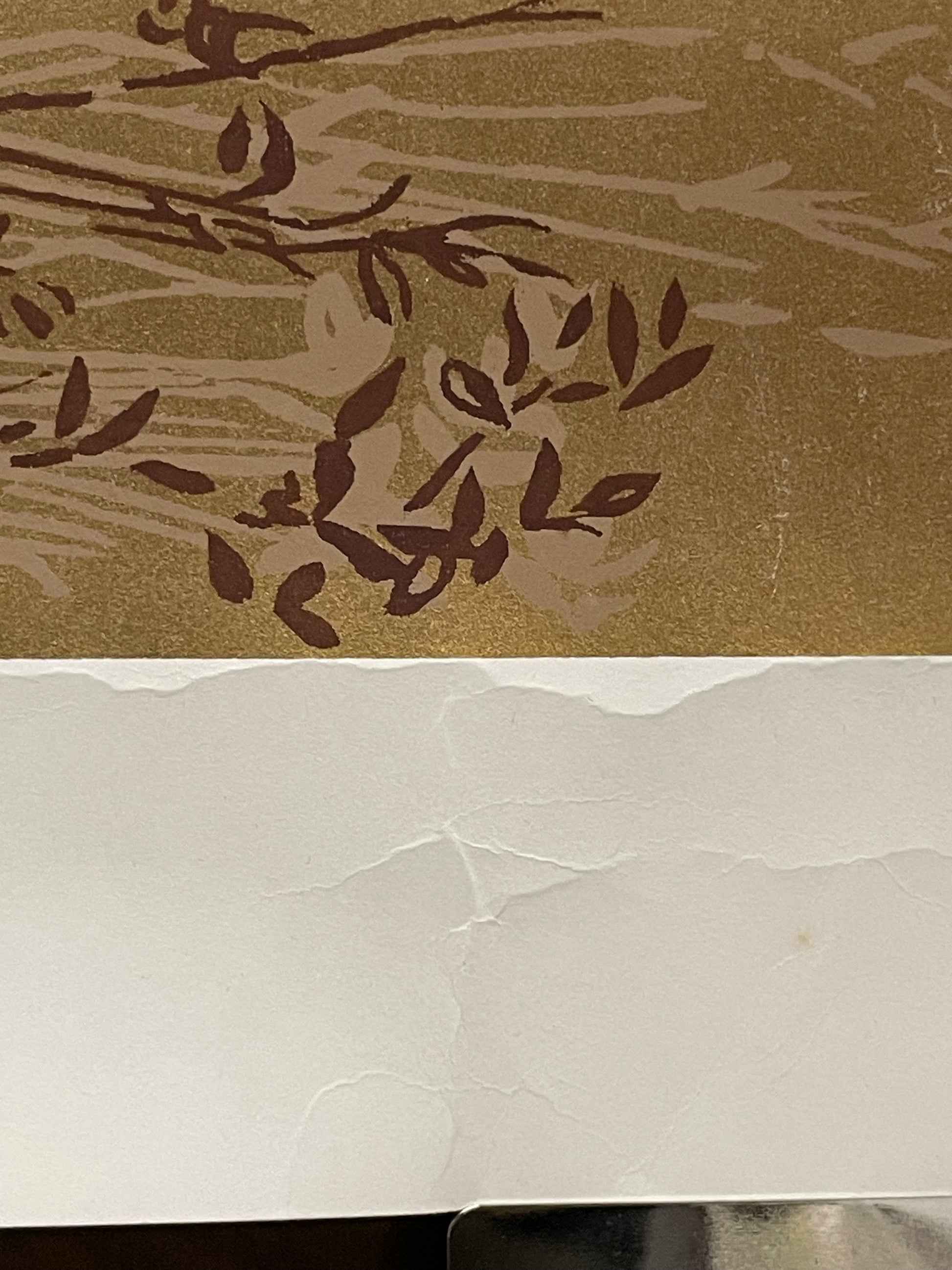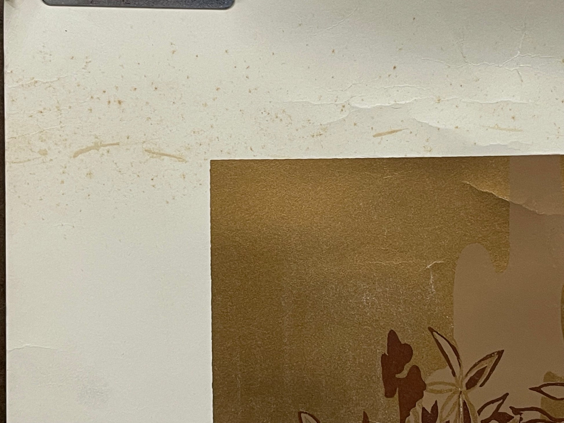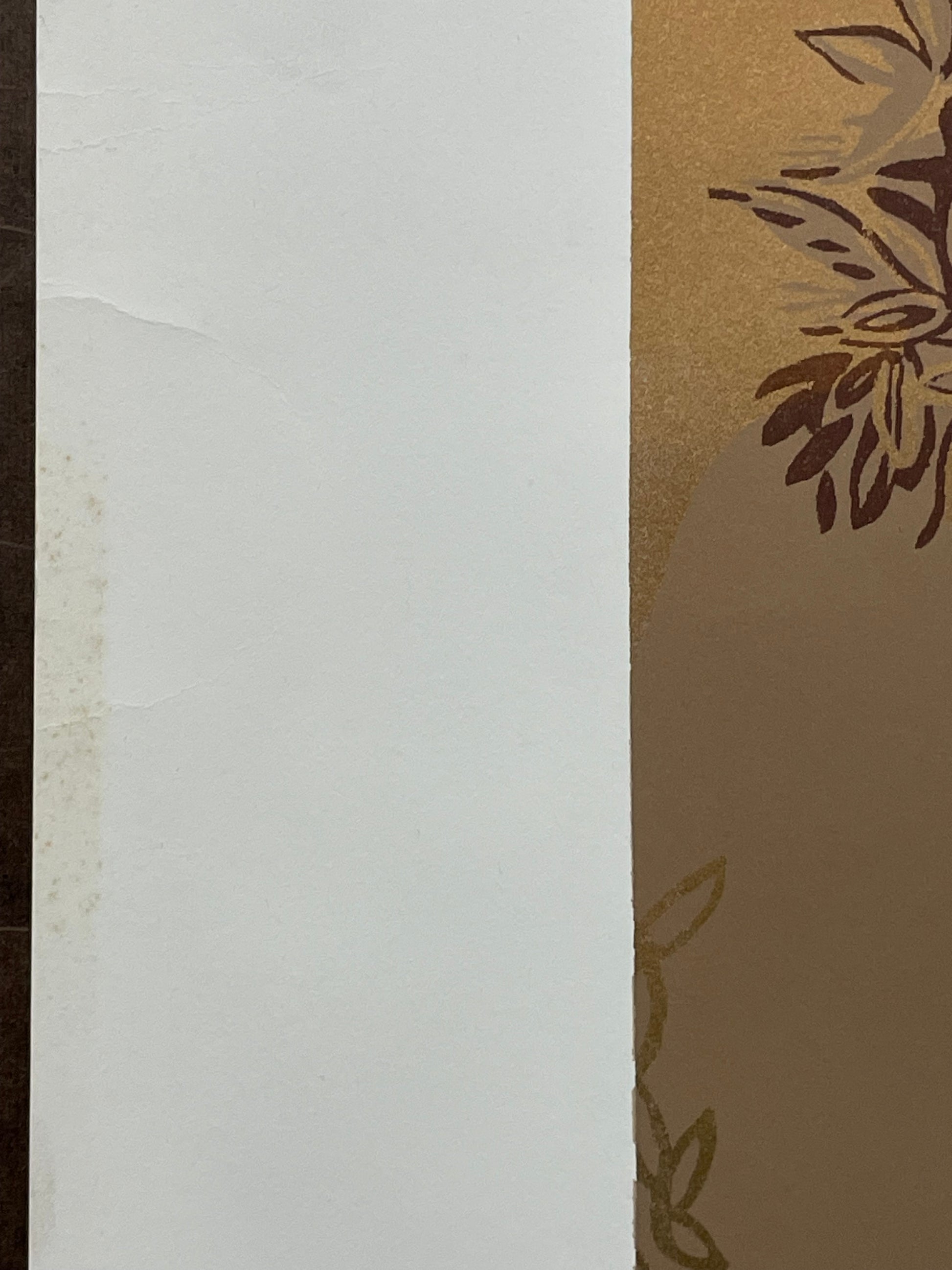 condition: Fair. Silk screened. Creases throughout with some pigment loss in the image; foxing in the margins. Rolled.