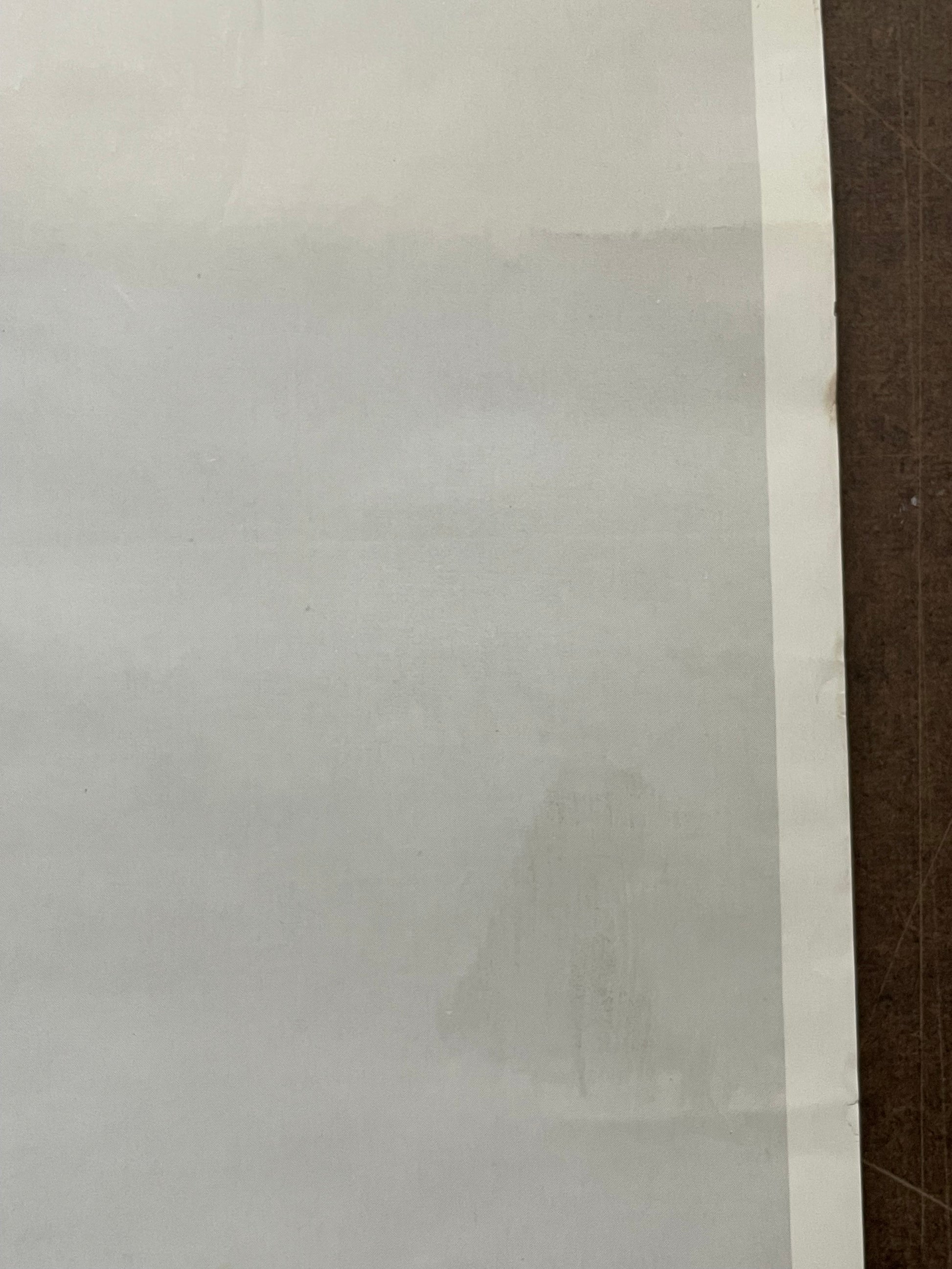 condition: Fair to good. Creases at the top and bottom. Scuff marks at the bottom. Edge tear. Rolled.
