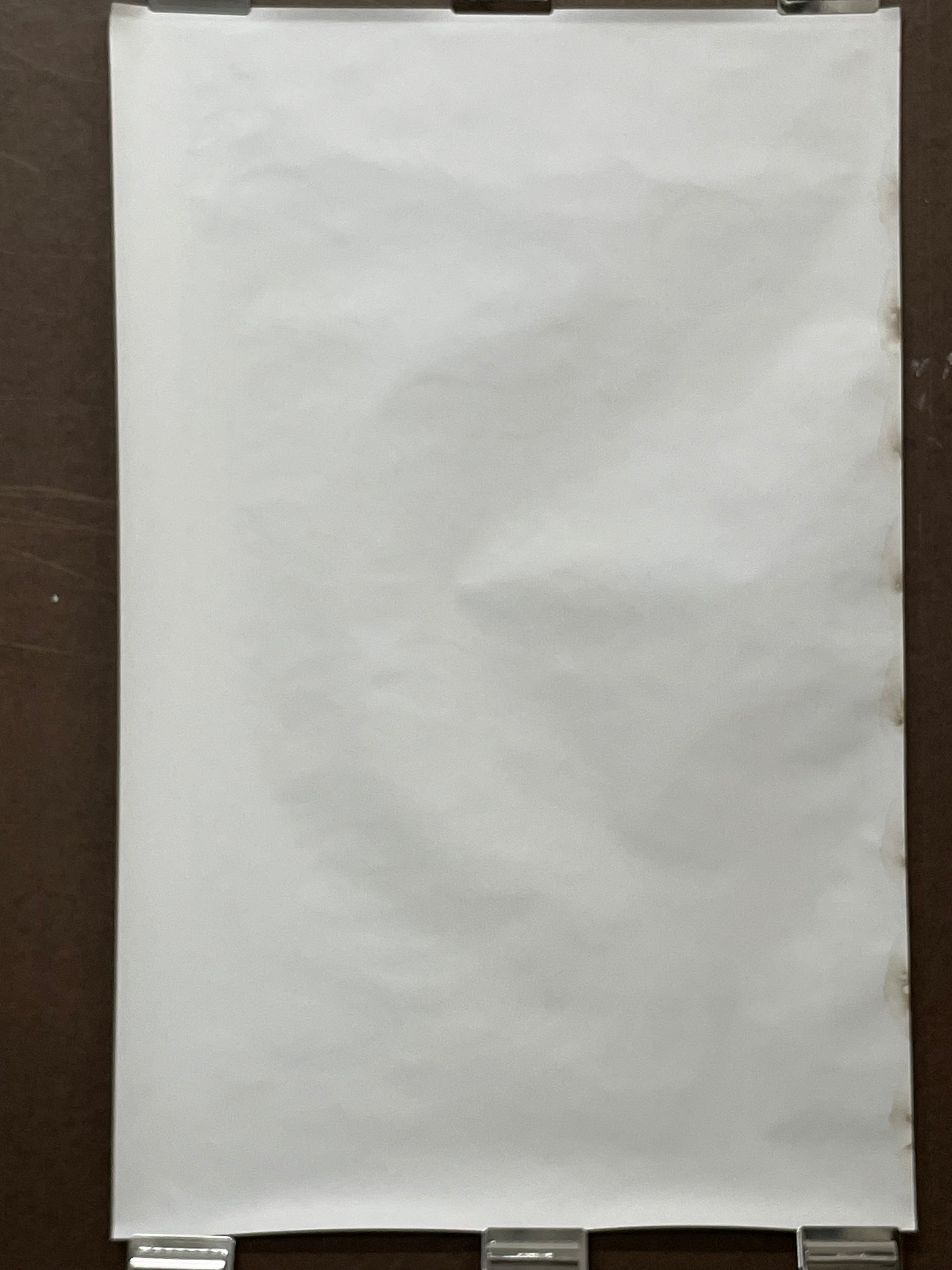 condition: Fair to good. Staining across the top edge; soft folds on left side; discoloration /smudge on the left side. Rolled.