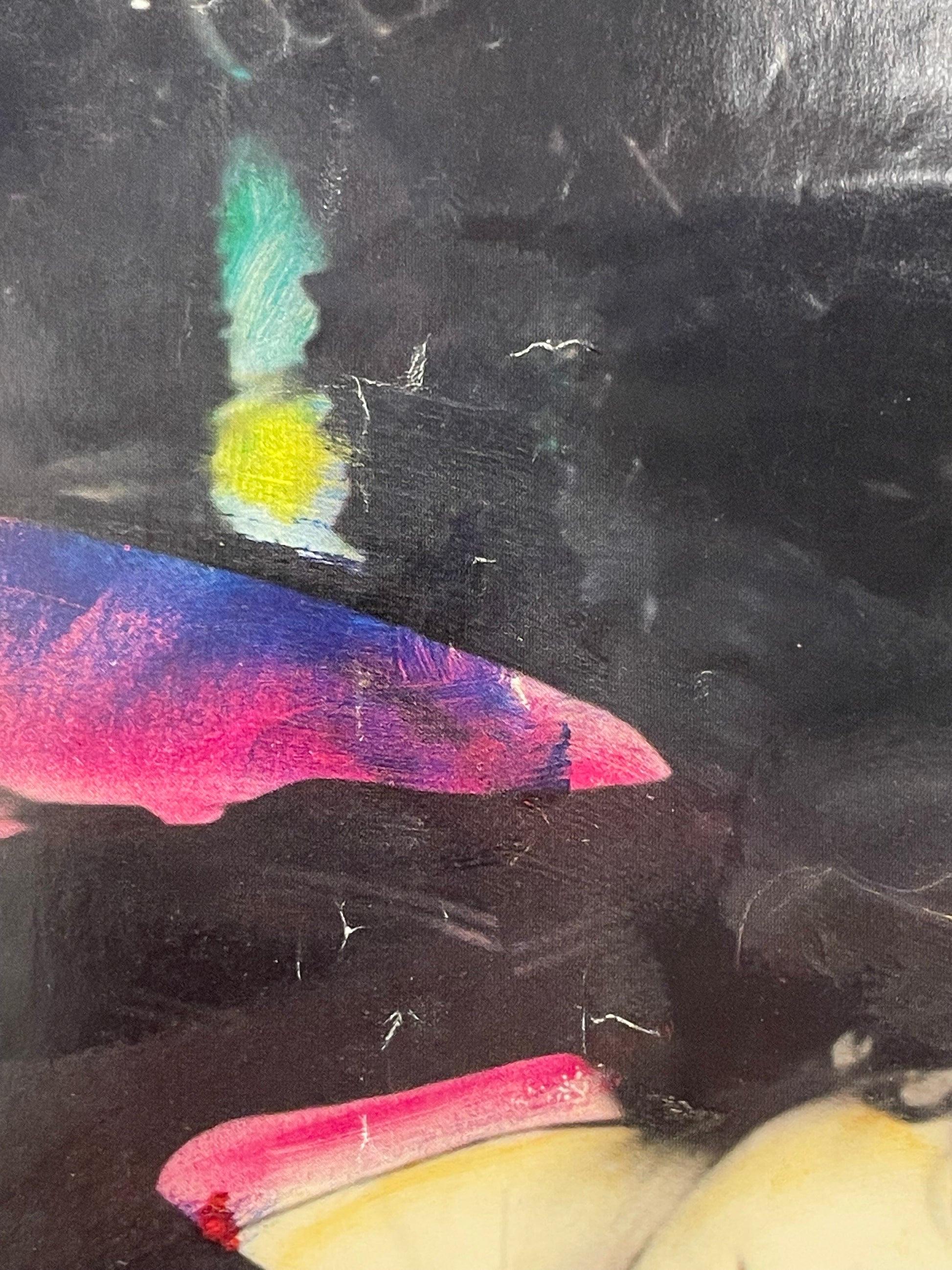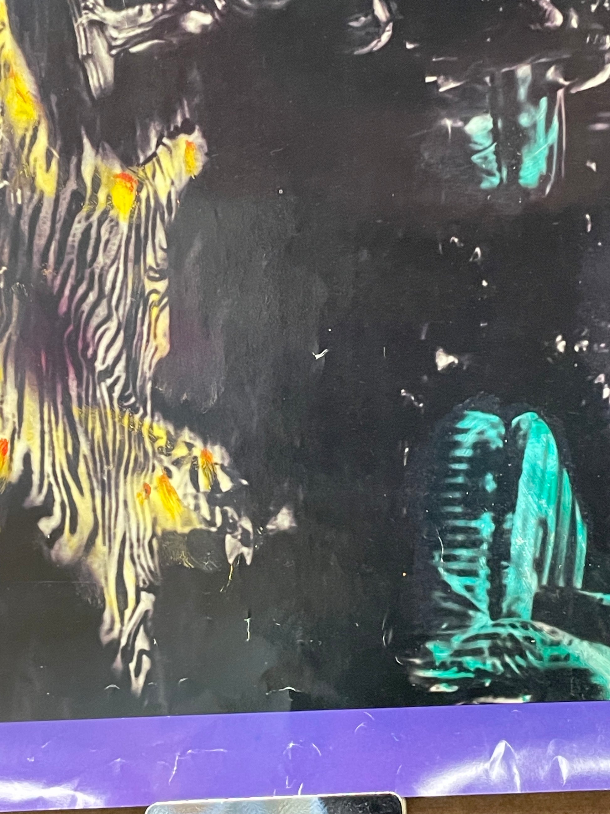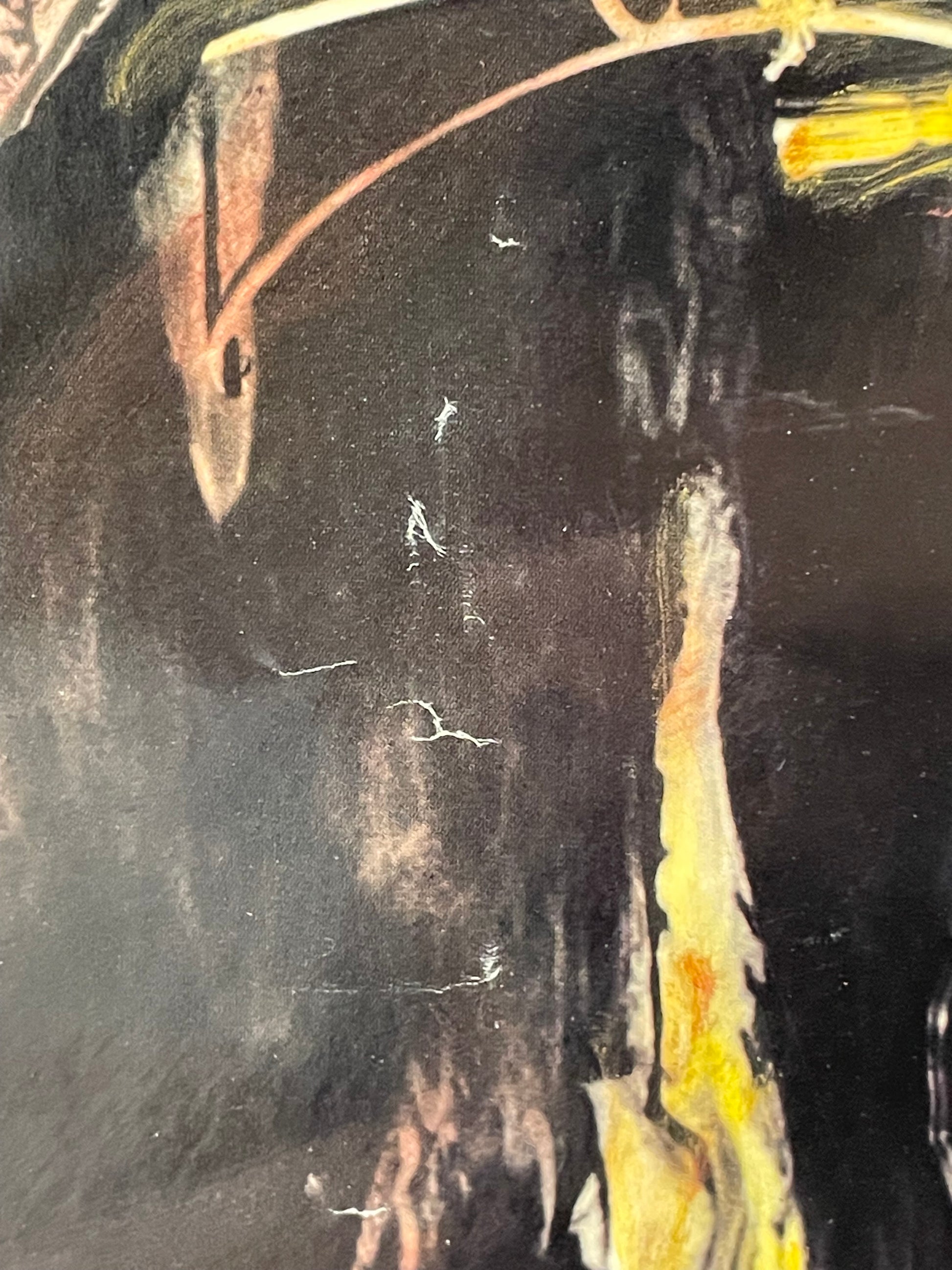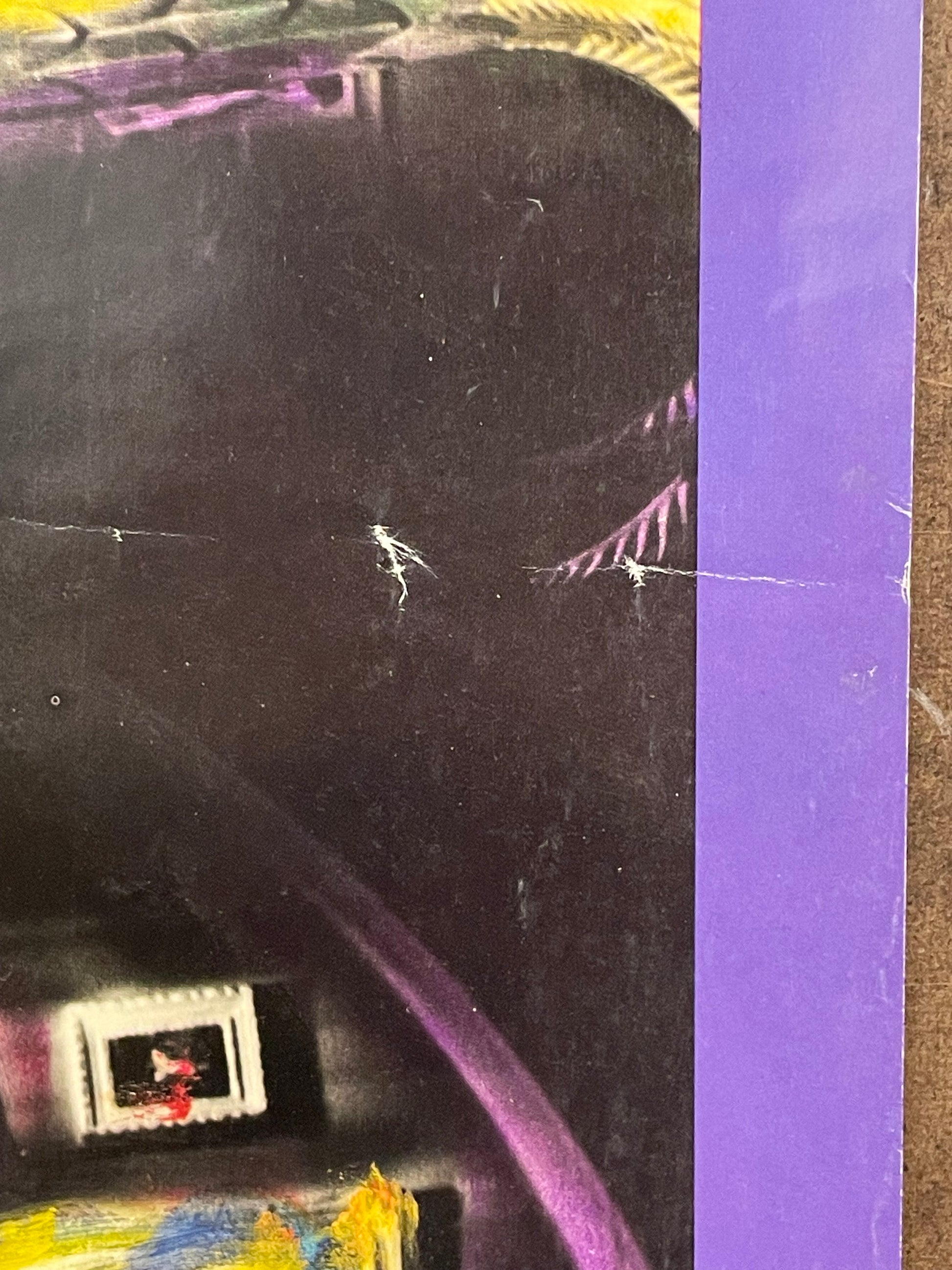 condition: Good condition. Creases throughout. Adhesive stains. Gummy adhesive and tape on the back. Rolled.